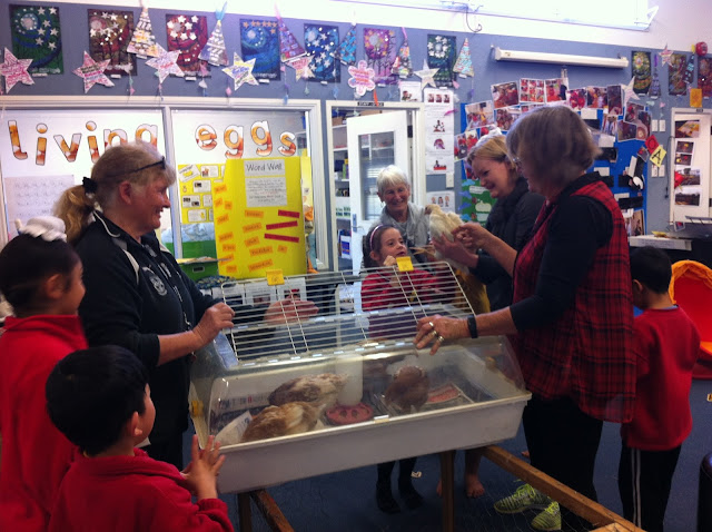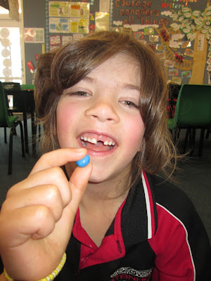 This set has one of each colour. Isabel asks, "What chance is there of picking green?" We say it is one out of five because there is equal chance to get each colour.